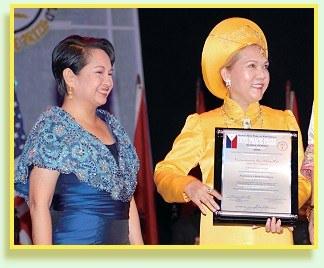 2006年獲頒「顧氏和平獎」,左為當時擔任菲律賓總統的雅羅育女士